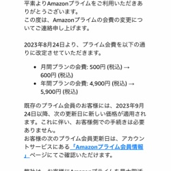 本日、ピコーンとメールが届きました。やりやがった!Amazonプライム会費値上げだそう。こんな大事なことをしれっとメールで連絡するだけって。新入社員か!新入社員のやり口か!ぐあー。年間1000〜1200円の値上げですよ。月100円かたいしたことないのね、と思いきや、比率に ...