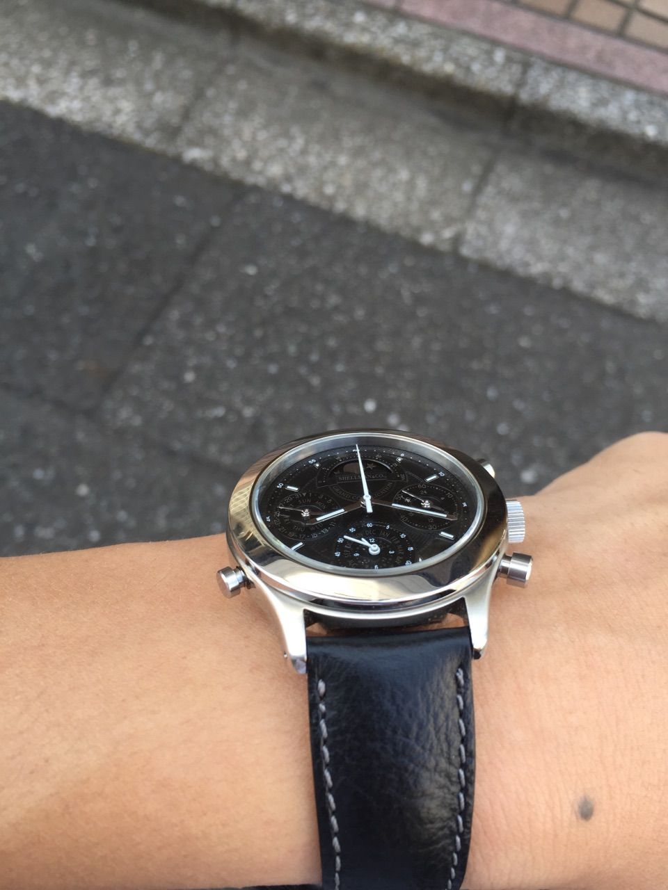あと、クロノグラフ針が白くて、一番目立つ。パッと見、分針と見紛うほどの、存在感。たぶん、時分の視認性も、良くない。