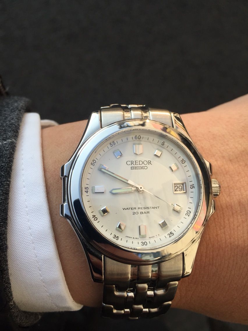 そんなパシフィーク。クレドールシグノからも出ていたり、自動巻/キネティック/クオーツと駆動方式が違うもの、ラウンド型/トノー型、三針/クロノグラフ、ベゼル形状や素材など、色々なバリエーションがあります。生産終了からしばらく経ちますが、人気があったのでしょう、結構出物多いです。