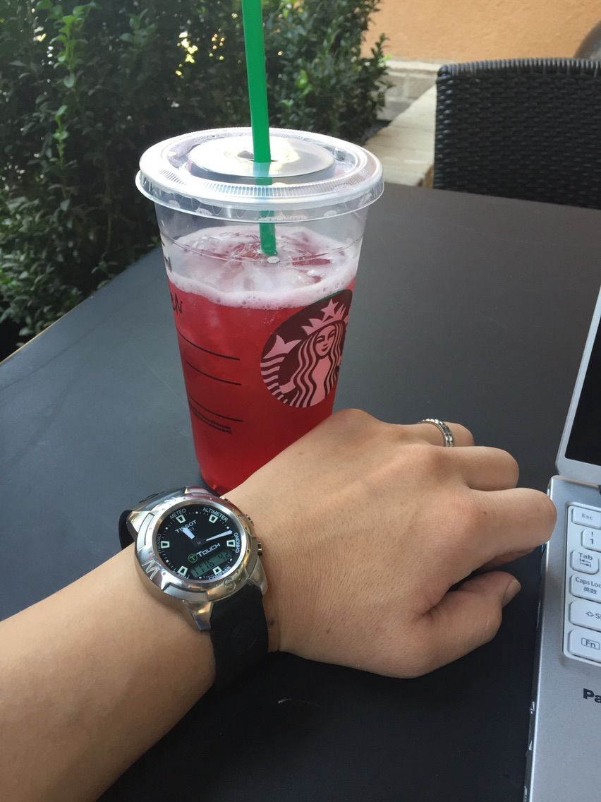 昨日の朝は、こうでした。安定の、スタバの赤い水。