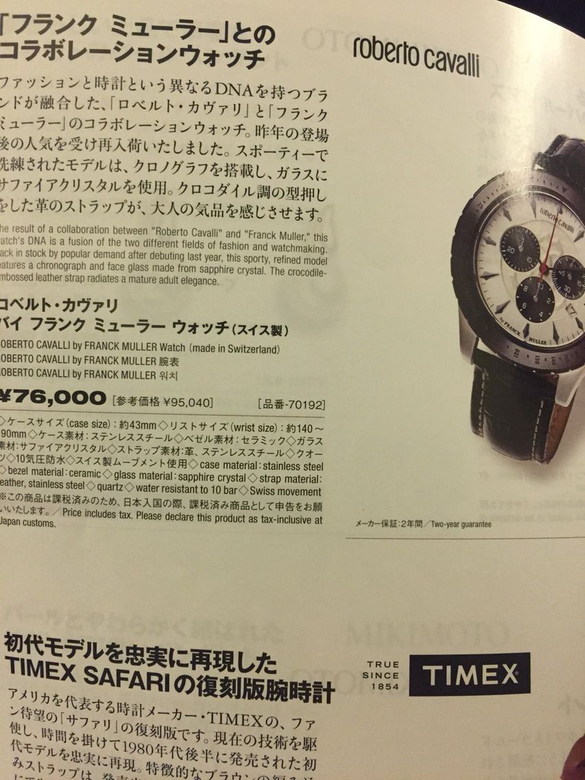 一方、こちら、中身はクオーツ、デザインはロベルトカヴァリ、なんだよね?フランクミューラー要素、どこにいっちゃったのかしら。
