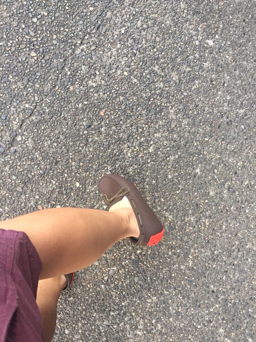 雨なんか降ってないけど、試し履き。コンビニ行っただけで、ズルズルに靴擦れしました。ゴムの摩擦係数…!