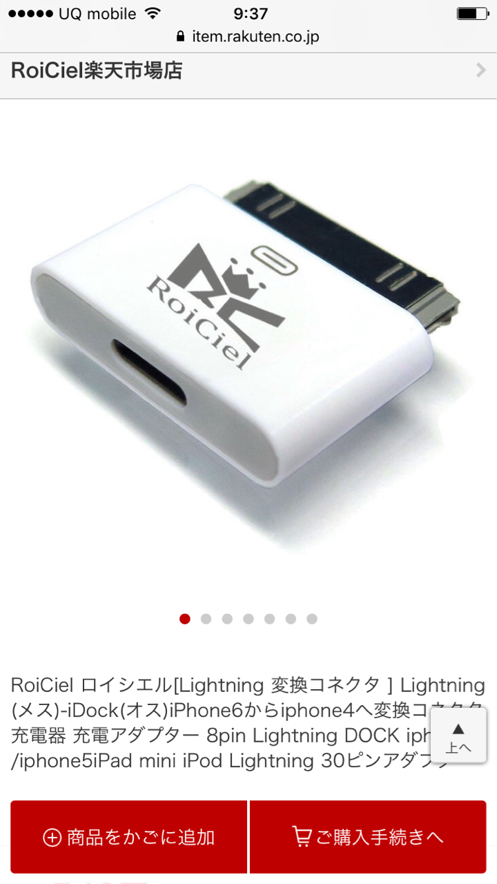 ライトニングケーブルに繋げる変換プラグ。逆に30ピンの充電ケーブルに繋げるための変換プラグは結構あるんだけどね、コレは楽天でしか見つからなかった。そして値段は540円。安い!