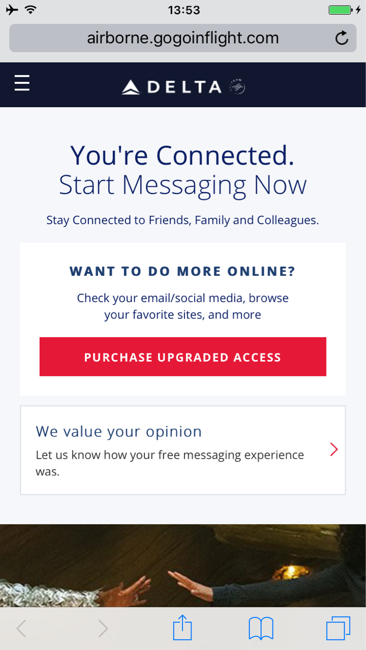 驚いたんですが、機内のWIFIが無料になってるんです。