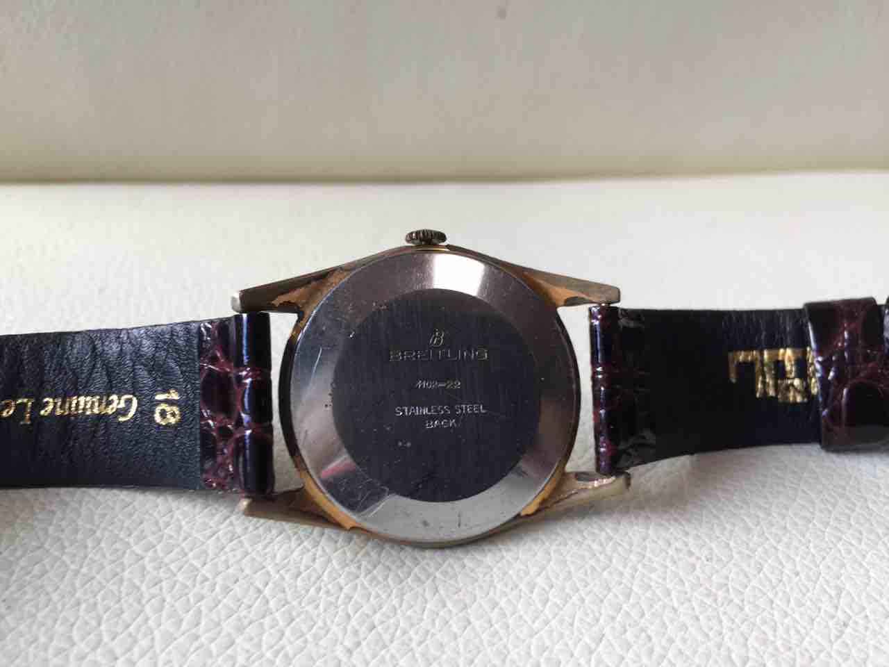 裏蓋。昔のブライトリングのロゴに使われているBの筆記体、カッコいいですよね。