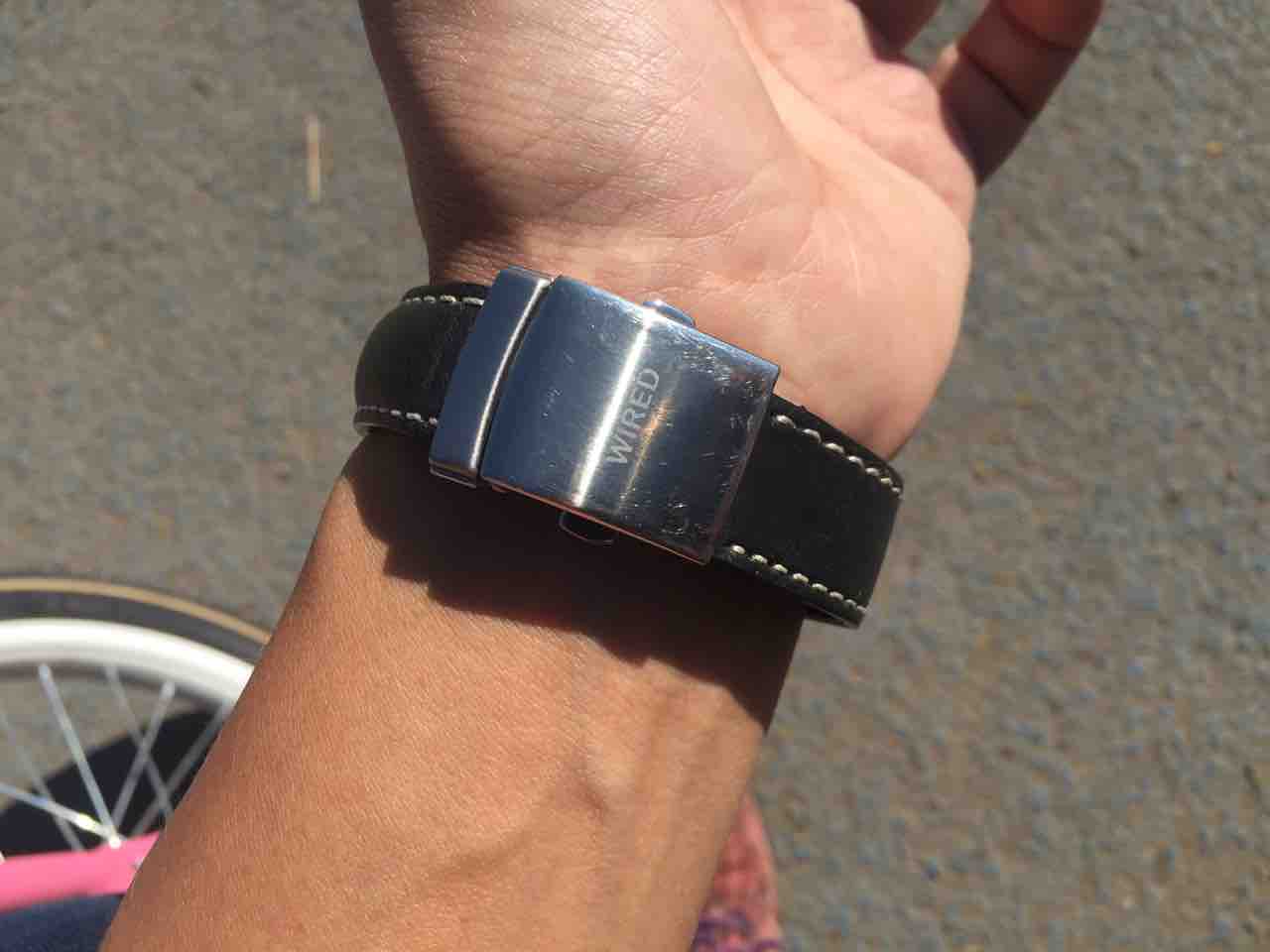 このまま寝かしておいたら一生使わない気がしてきたので、手元に余っていたセイコーワイヤードのバックルで無理矢理使うことに。ベルト穴もブスリと無理矢理開けました。