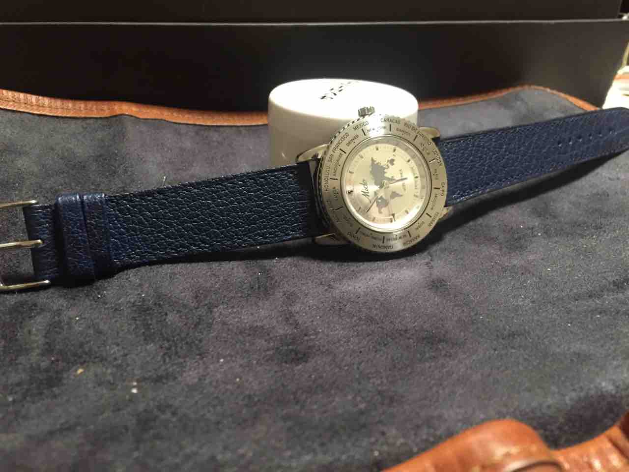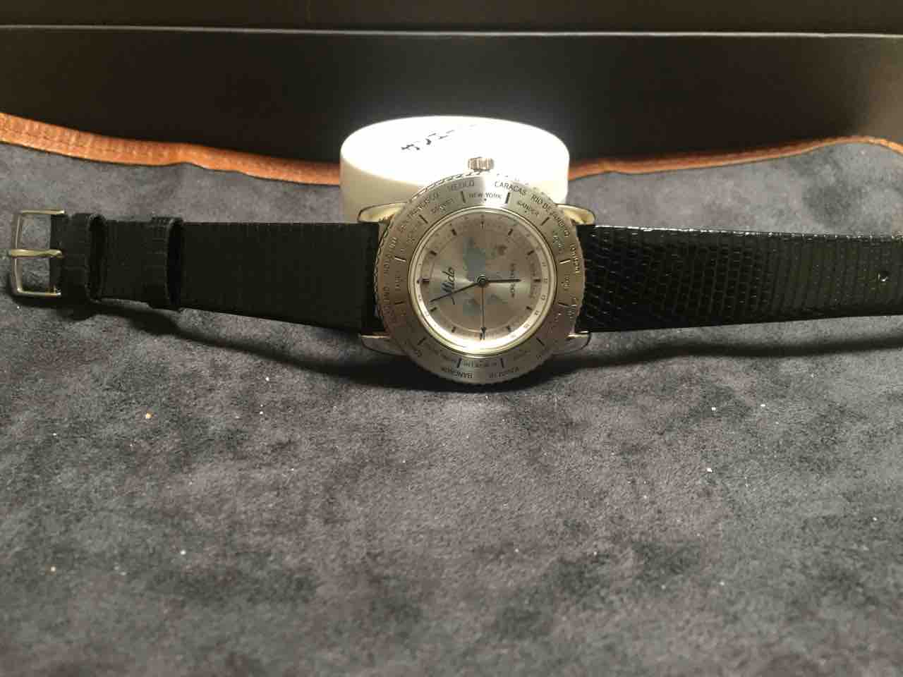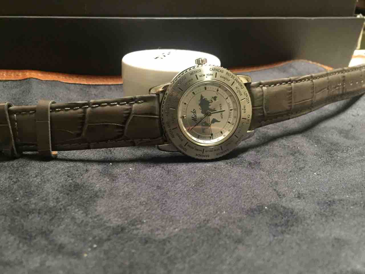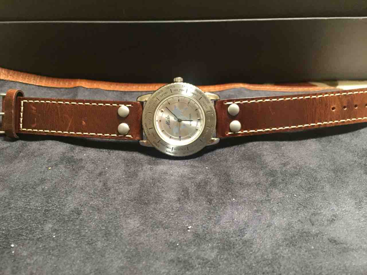 確かモレラートのもの。たぶん7〜8年前に買ったんですが、シックリくる時計が見つけられず、延々と寝かしています。ベルトだけ浮いちゃうんです。ただ、ミドーのワールドタイマーが超絶にカッコ良いからでしょう、これも悪くない。