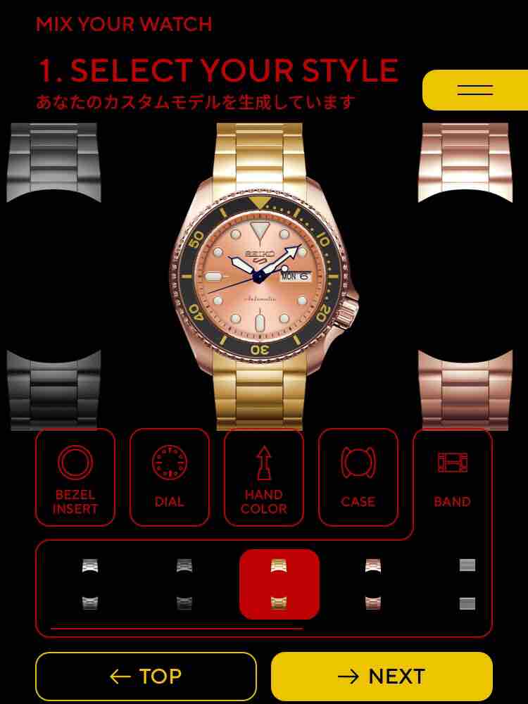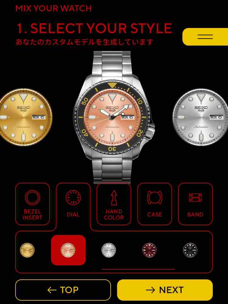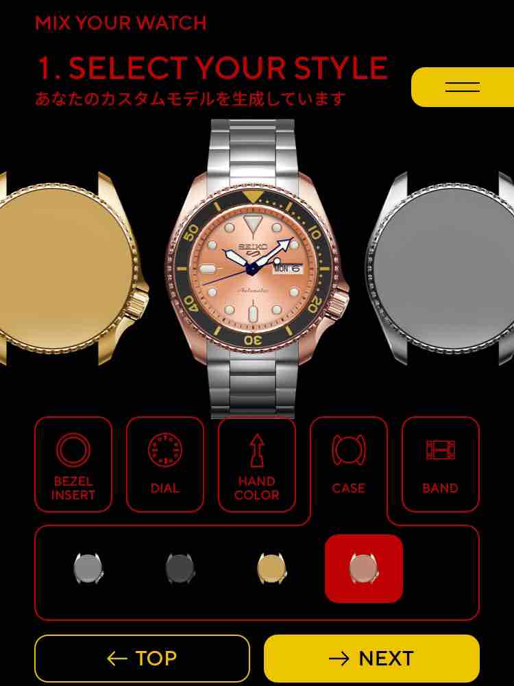 で、作ったカスタムデザインは登録・全世界に向けて公開されます。その上で、世界ウン10万人のセイコー5ファンの皆さんから高い評価を受ければ、商品化されるのだそうです。