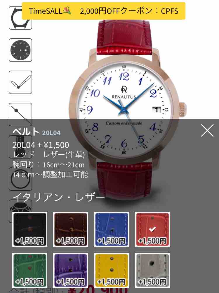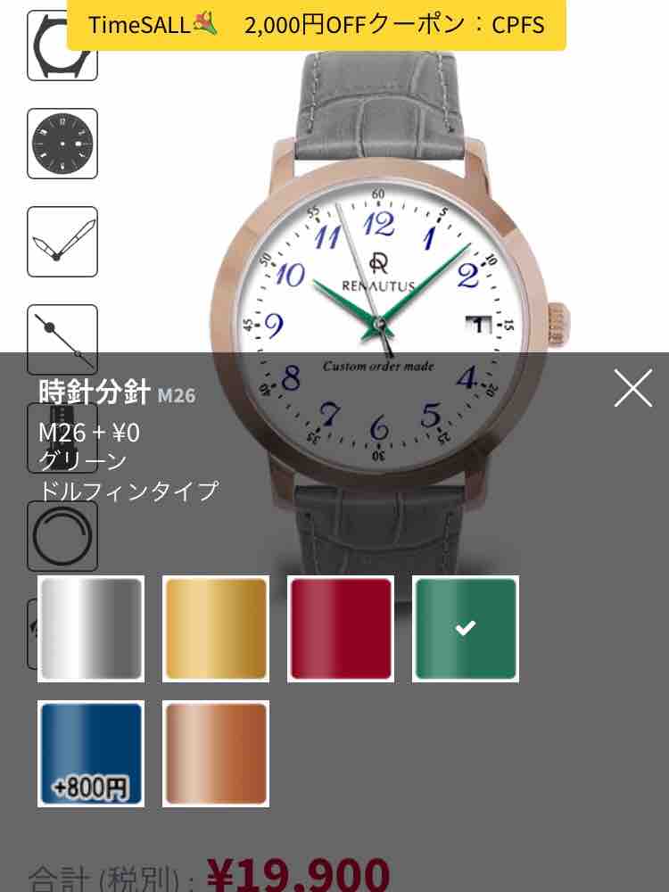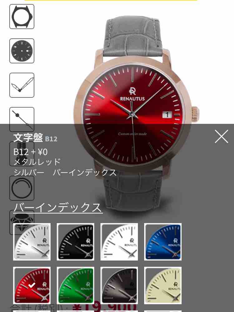 そして、このルノータスさんのカスタムオーダーのシミュレーションも使いやすい。シチズンさんはFTSのサイトも改善した方が良いですよ。後発なのに。