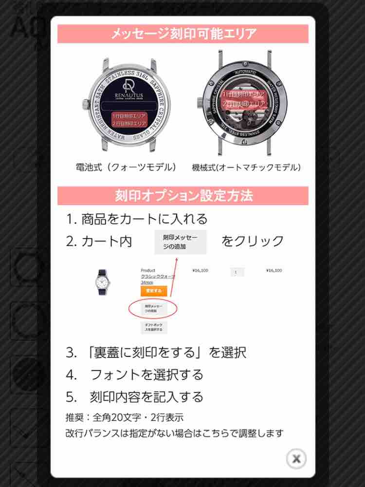 最大20文字まで刻印可能なのがルノータスさんの特長。20文字……悩みます。20文字もあれば、5・7・5と一句詠んじゃってそれを刻印することも可能。俳人の血が騒ぎますなあ!