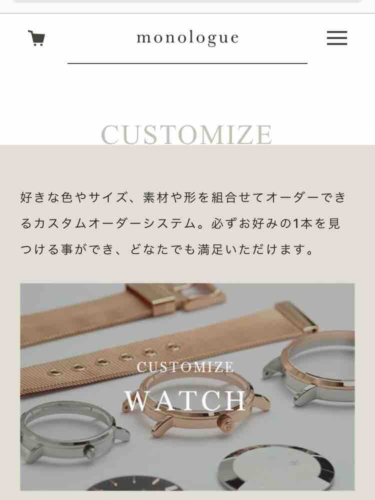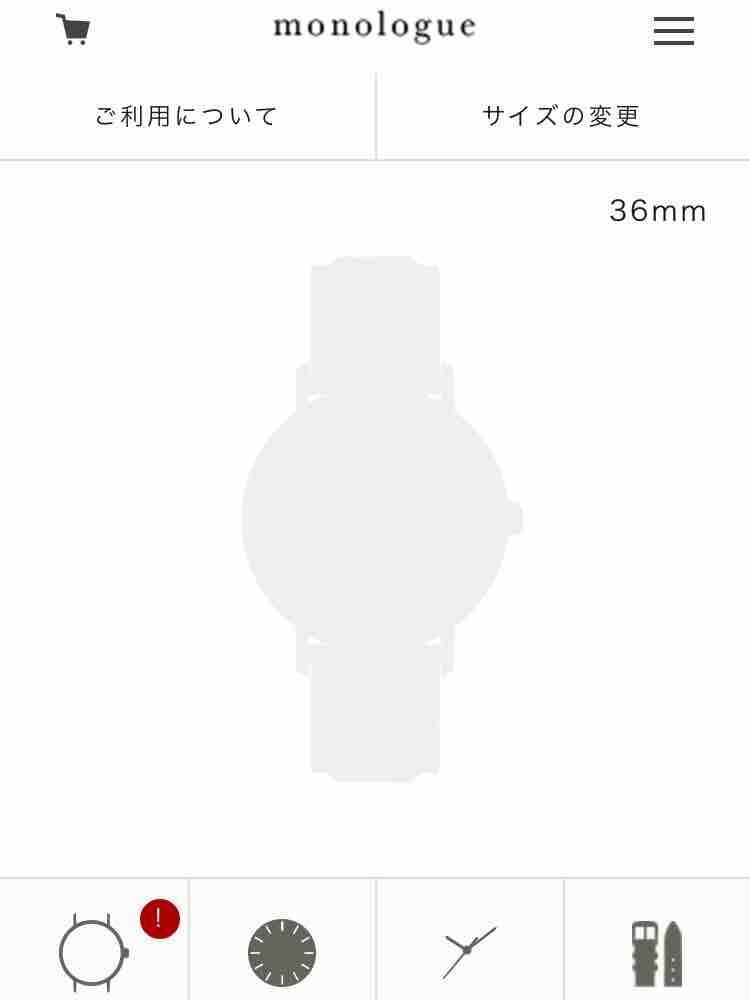 カスタマイズページに行くと、腕時計のシルエットが表示されます。これから自分でカスタマイズしていくんだぜ感が強く出ています。うーむ良い。