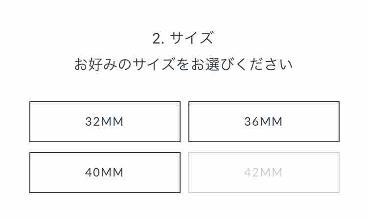 選んだ文字盤によっては、ケースサイズがないものも。