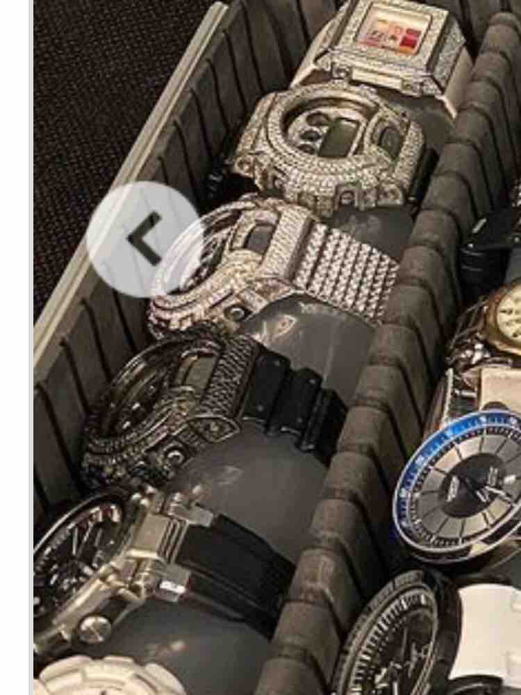 G SHOCKのカスタム品が多数。しかも、ダイヤでギラギラにしてるやつ。悪ー