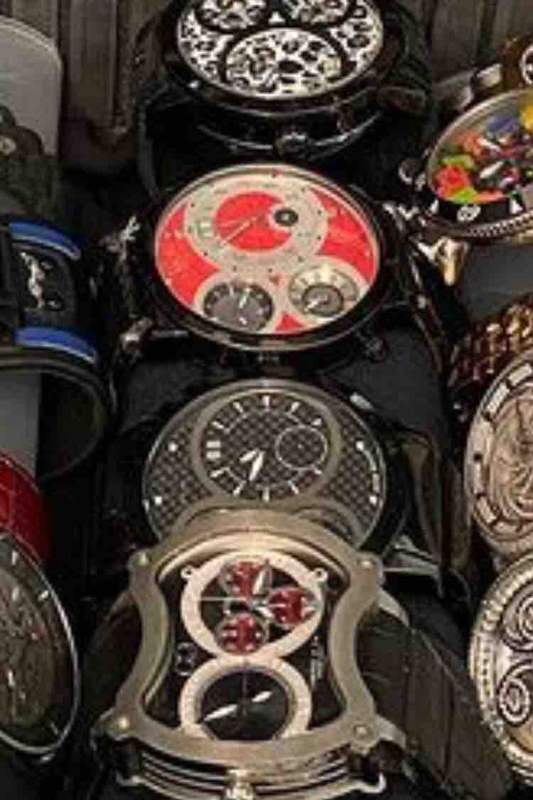 ドクロが描かれた文字盤。たしかにコーディネートのハズシには良いでしょう。僕も欲しいっちゃ欲しい。ただ、こんなにたくさんはいらない。こんな大量にドクロの時計持ってると、悪に染まりますな。
