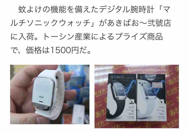 蚊が近づかなくなる!? 音波による防蚊機能付き腕時計が1500円