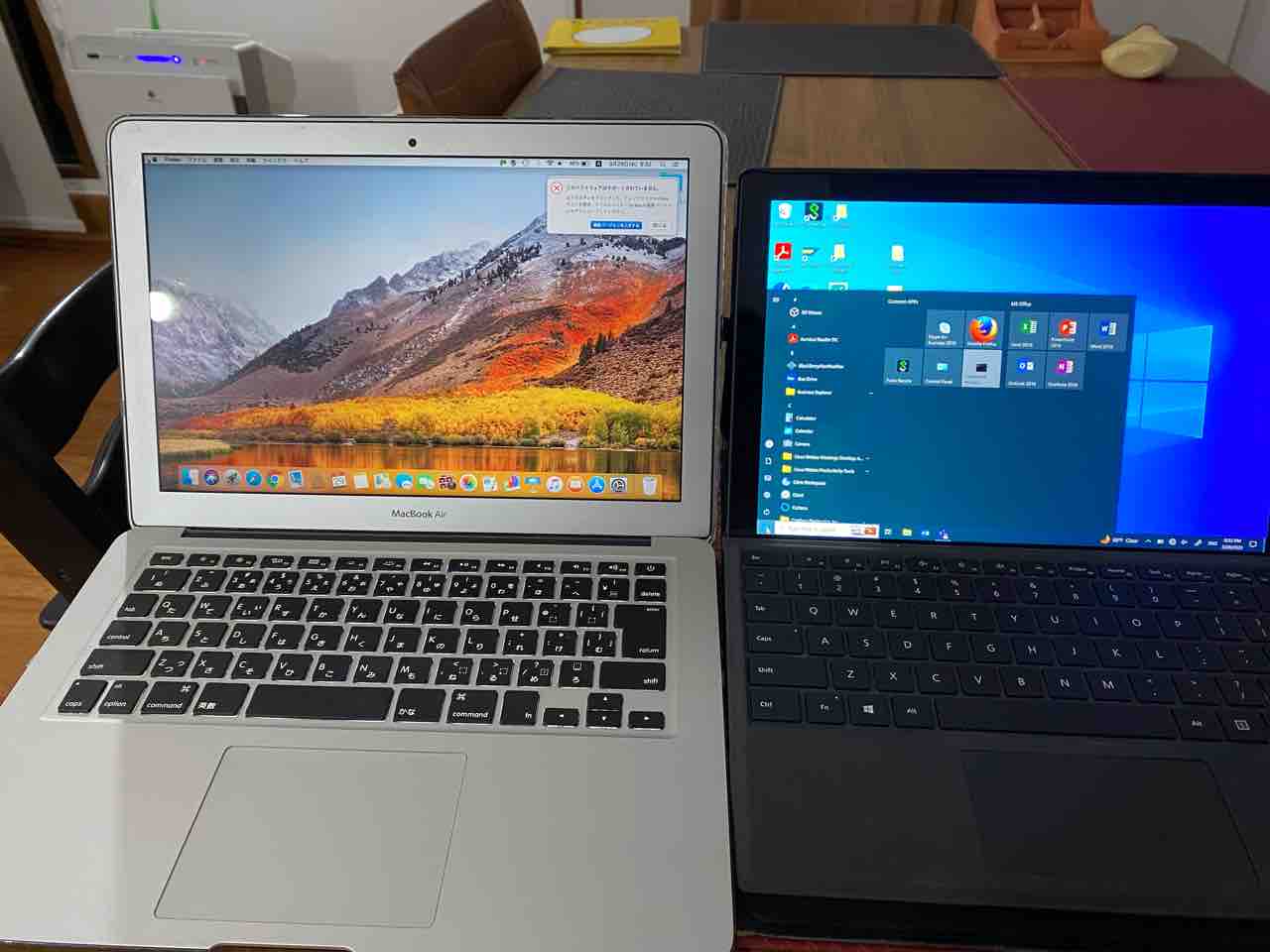 向かって左のMacBook AirからMicrosoft surface pro6へ。