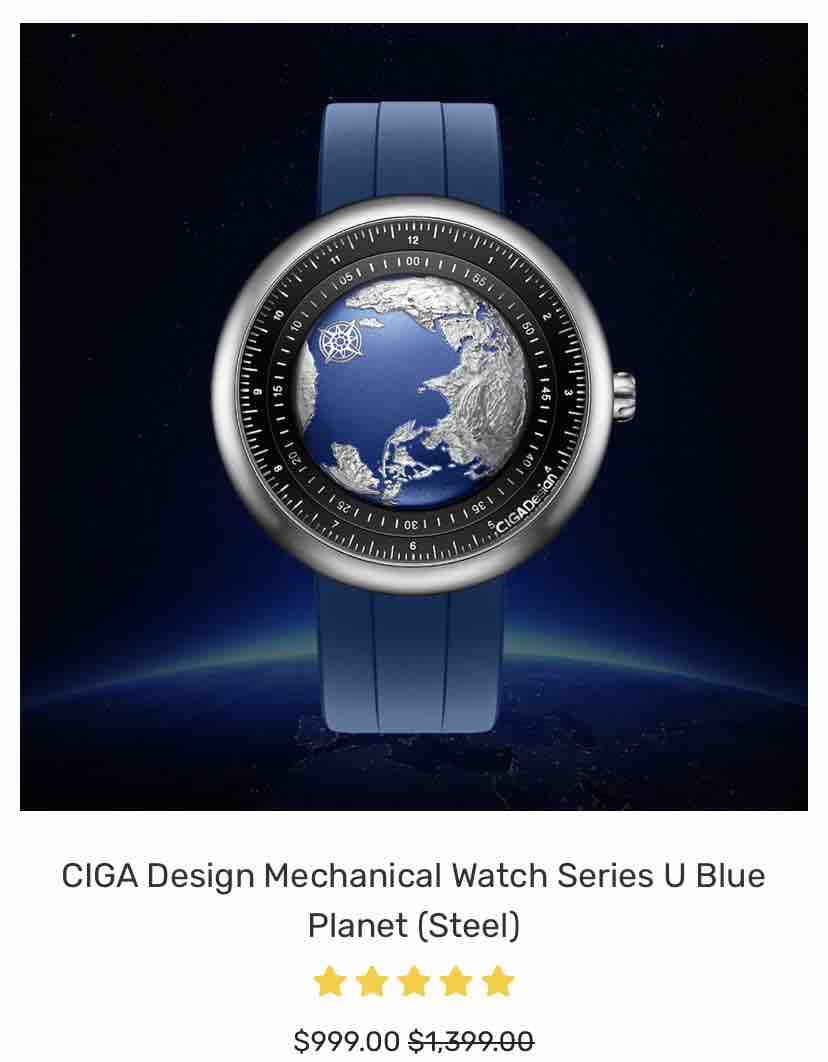 セイコーインスツルさんの往年の名作・think the earthを彷彿とさせるリアルな地球を文字盤にした、中国CIGA designさんの BLUE PLANET。