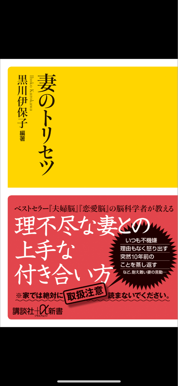 最近kindle unlimitedで読んだ本。黒川伊保子著「妻のトリセツ」(講談社+α新書)