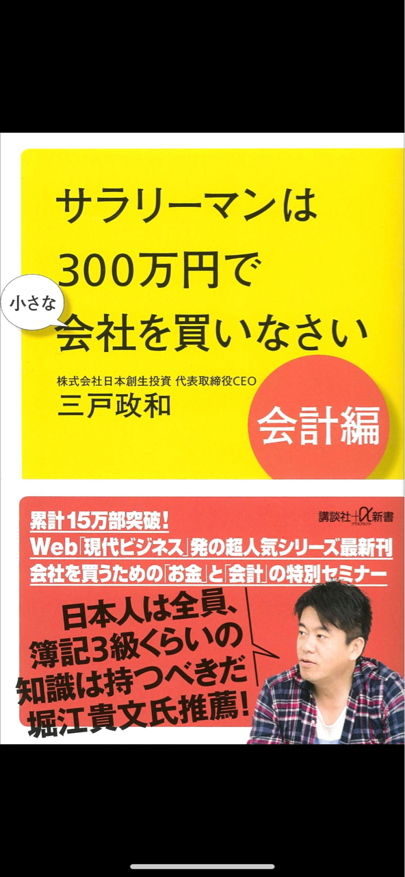 三戸政和著「サラリーマンは300万円で小さな会社を買いなさい 会計編」(講談社+α新書)