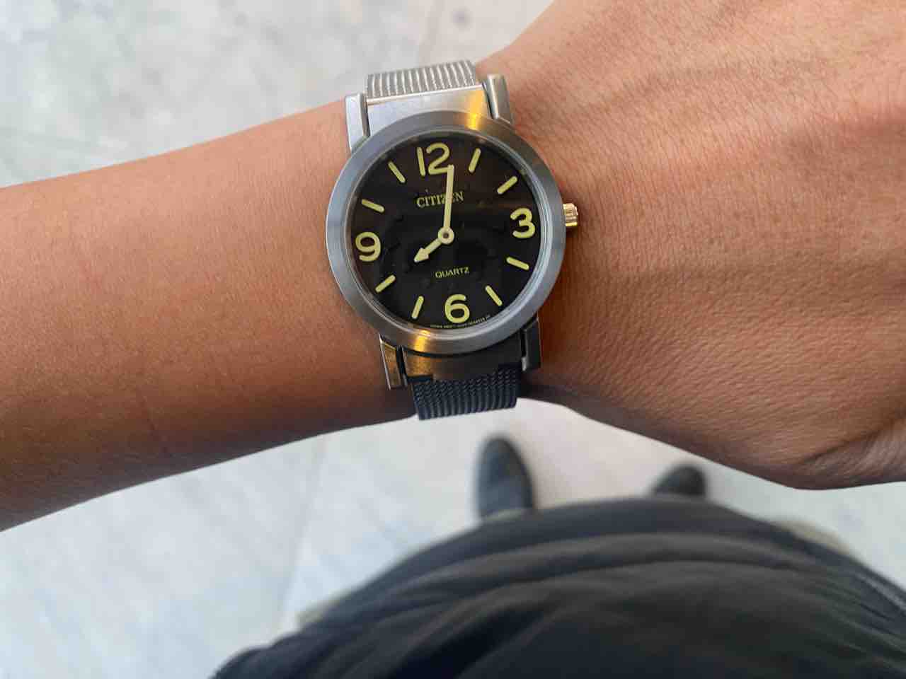 月曜日はシチズンの目が不自由な人用の時計。風防が名探偵コナンくんの時計みたいにガバッと開きます。