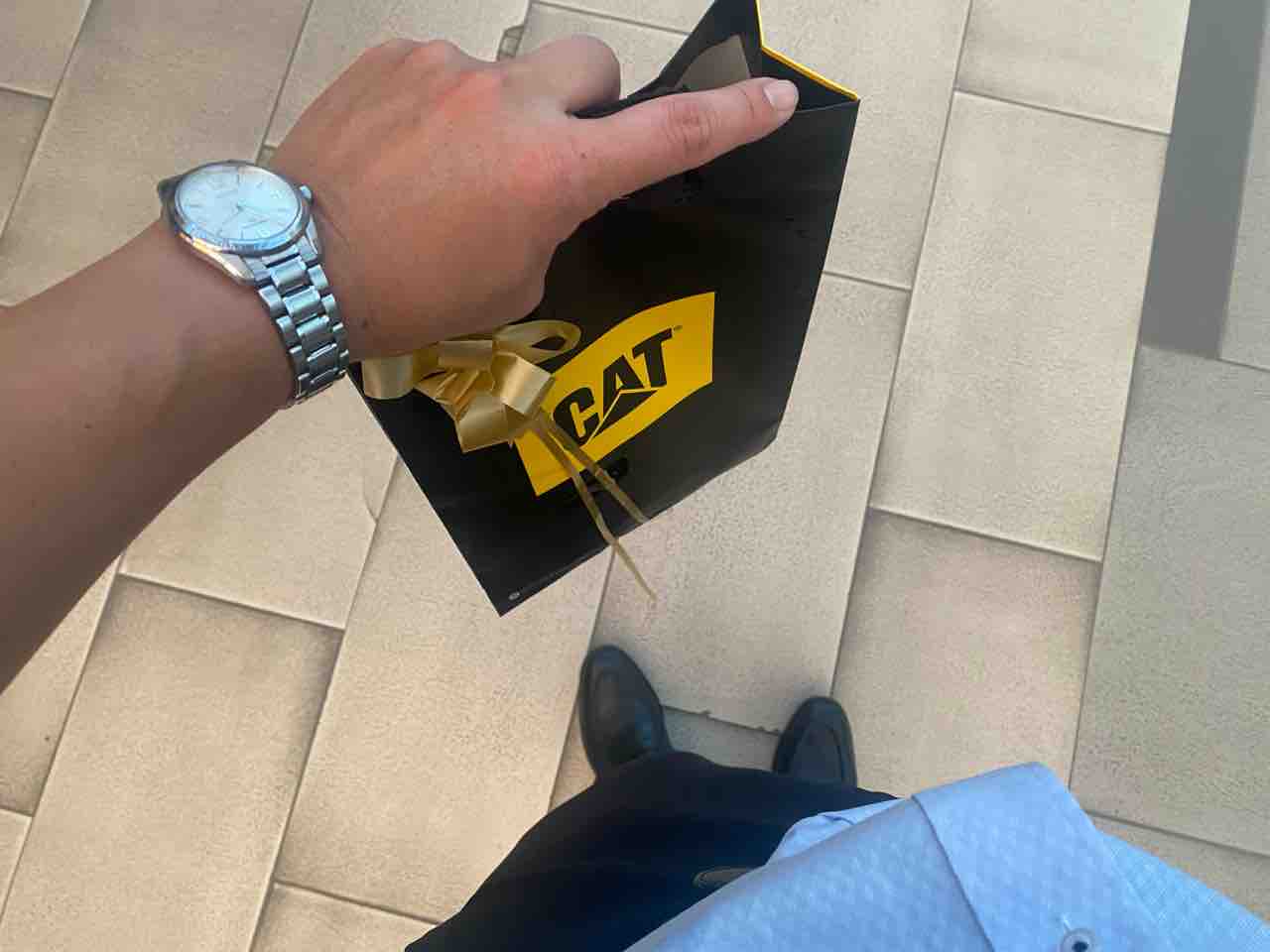 僕が受け取ったのは、CATのウエストポーチでした。CATってトラックとかショベルとかの会社で、日本でいうところのKOMATSUみたいなもの。が、南米だとCATさんたら工事現場から飛び出して服から靴まで展開していて、一大ブランドとして輝きを放っています。デパートにも入ってるもんね。わりとカッコいいのですよ。