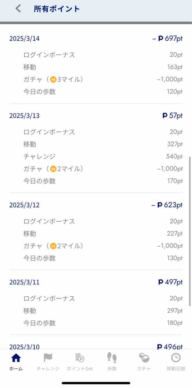 歩数がポイントになるの嬉しい。ただ、自動でポイントをくれるわけじゃなくて、ログインして歩数に応じた回数ポイント受け取りをタップしないといけない。最初は知らなかったので受け取り損ねました。