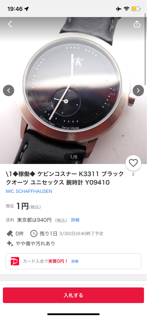 そしてこのカルバンクラインの時計、かっこいいんですよ。1円なのに誰も入札していないのは、品名ケビンコスナーだからだと思いますよ。