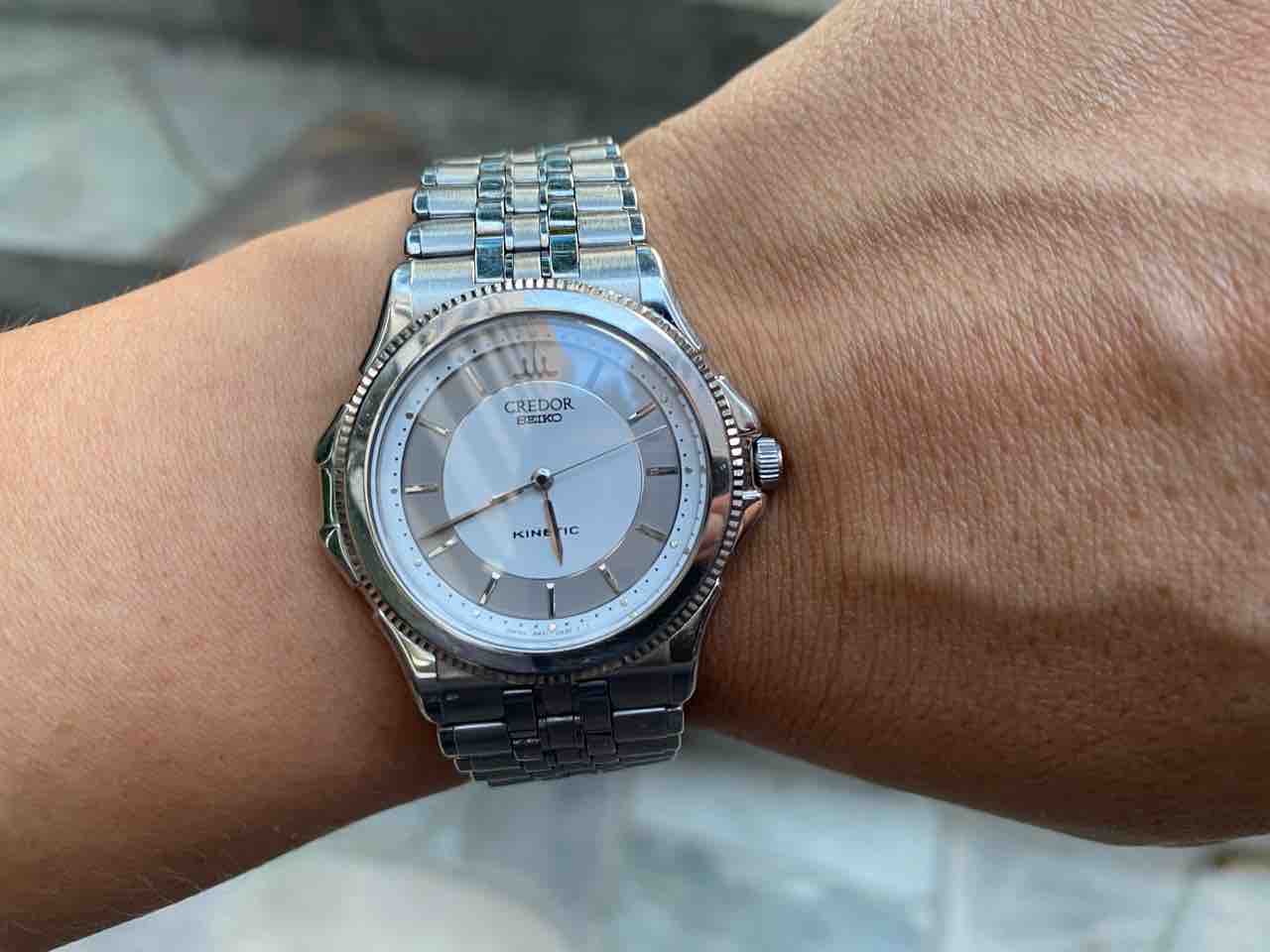 これももちろん7年ぶりの着用。キネティックなので、振ったら動き出しました。まあ、二次電池が劣化してるんでしょうね、翌朝には止まっていましたけど。パワーリザーブ短めの時計として使っていこうと思います。