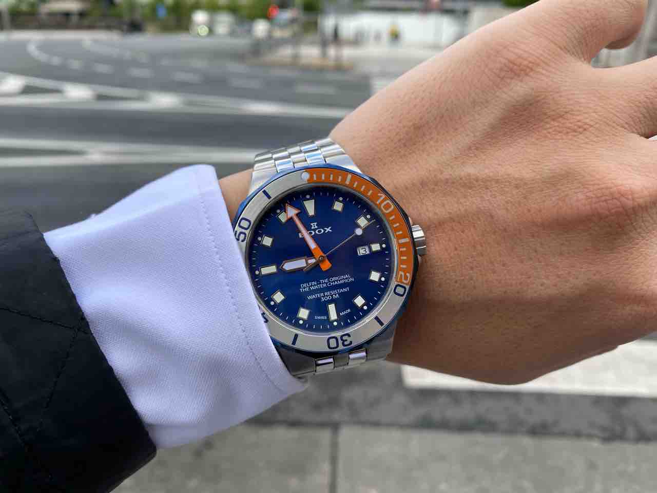 今日は、昨日電池交換したばかりのエドックスのデルフィン。