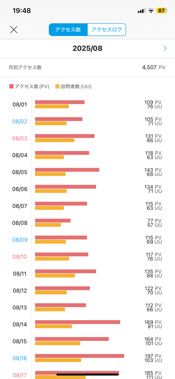 8月は4600PVでした。そりゃあAmazonアソシエイトに申し込んだら出直してこいって言われるわけだよ!