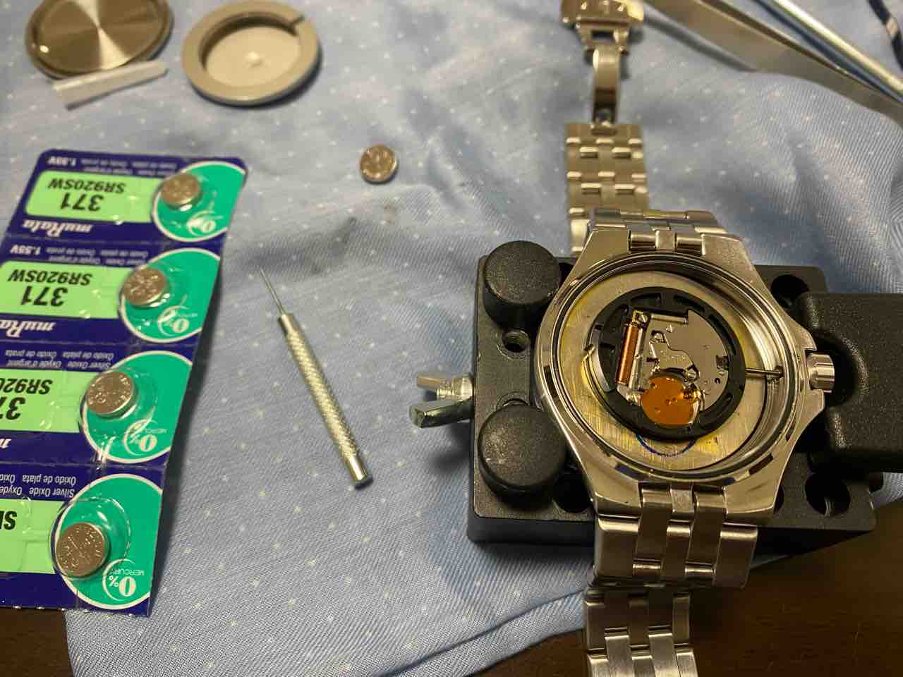 交換したら動きました。電池はSR920SW。