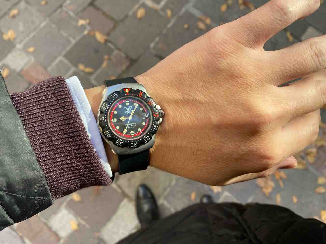 こちらは不動品で入手したタグホイヤーの初代フォーミュラ1。自分で電池交換したときは動かなかったんだけど、街の時計屋に持っていったら動きました。