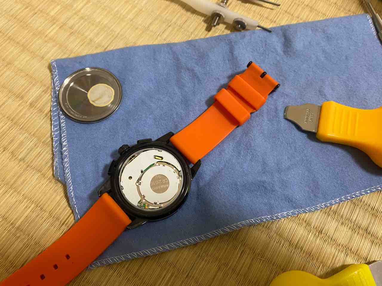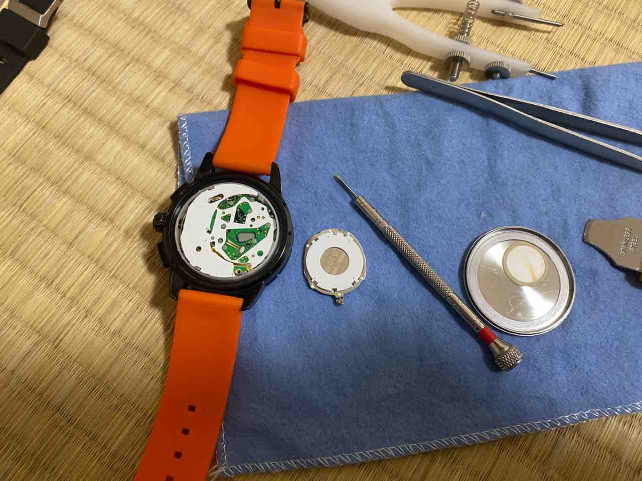 電池交換後、裏蓋を押し込むまで動き出しませんのでね、あたらしい電池入れても動かないよう〜ムーブメント壊れてる!、と騒がないでくださいね。