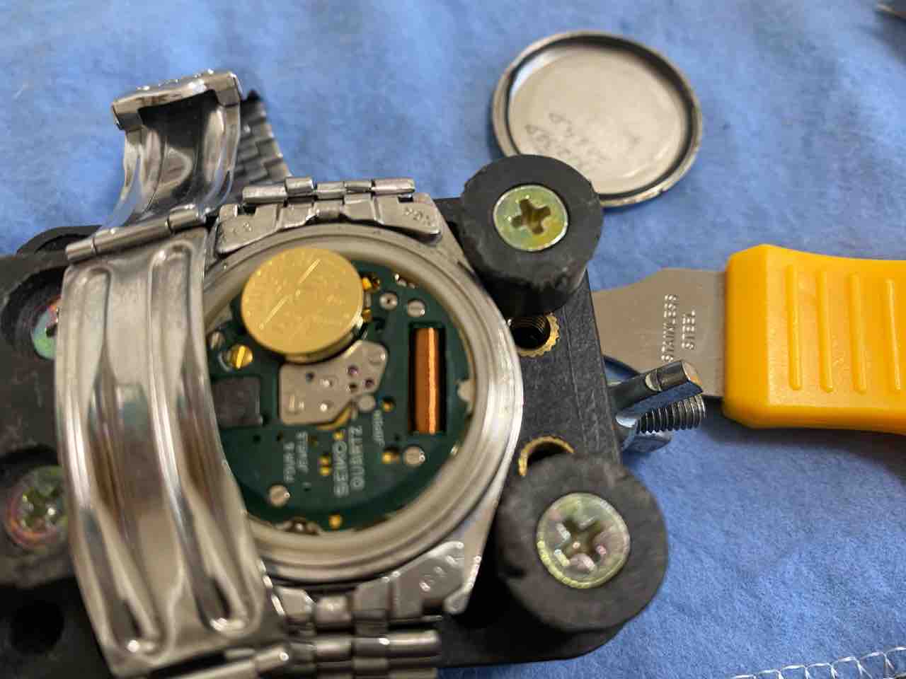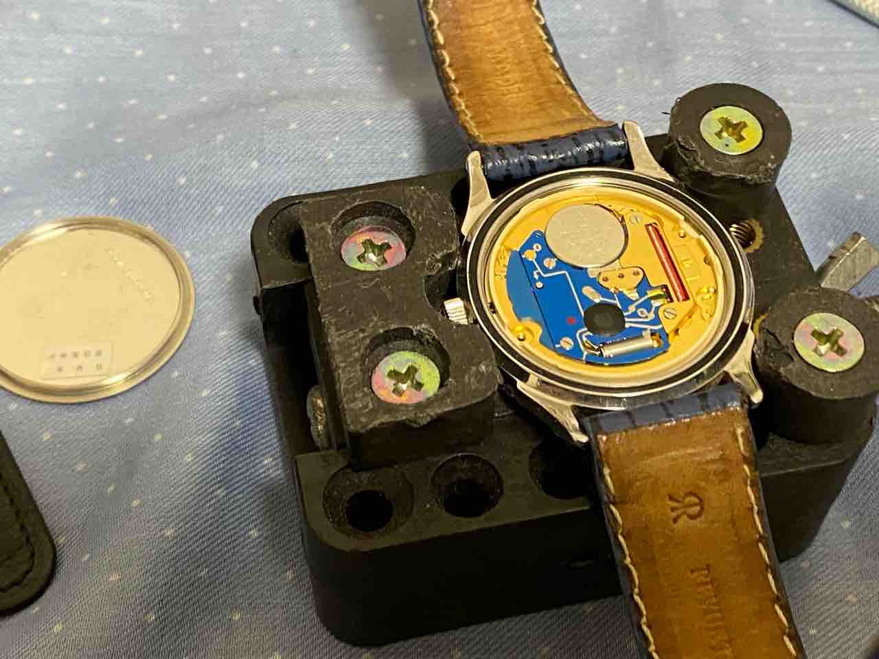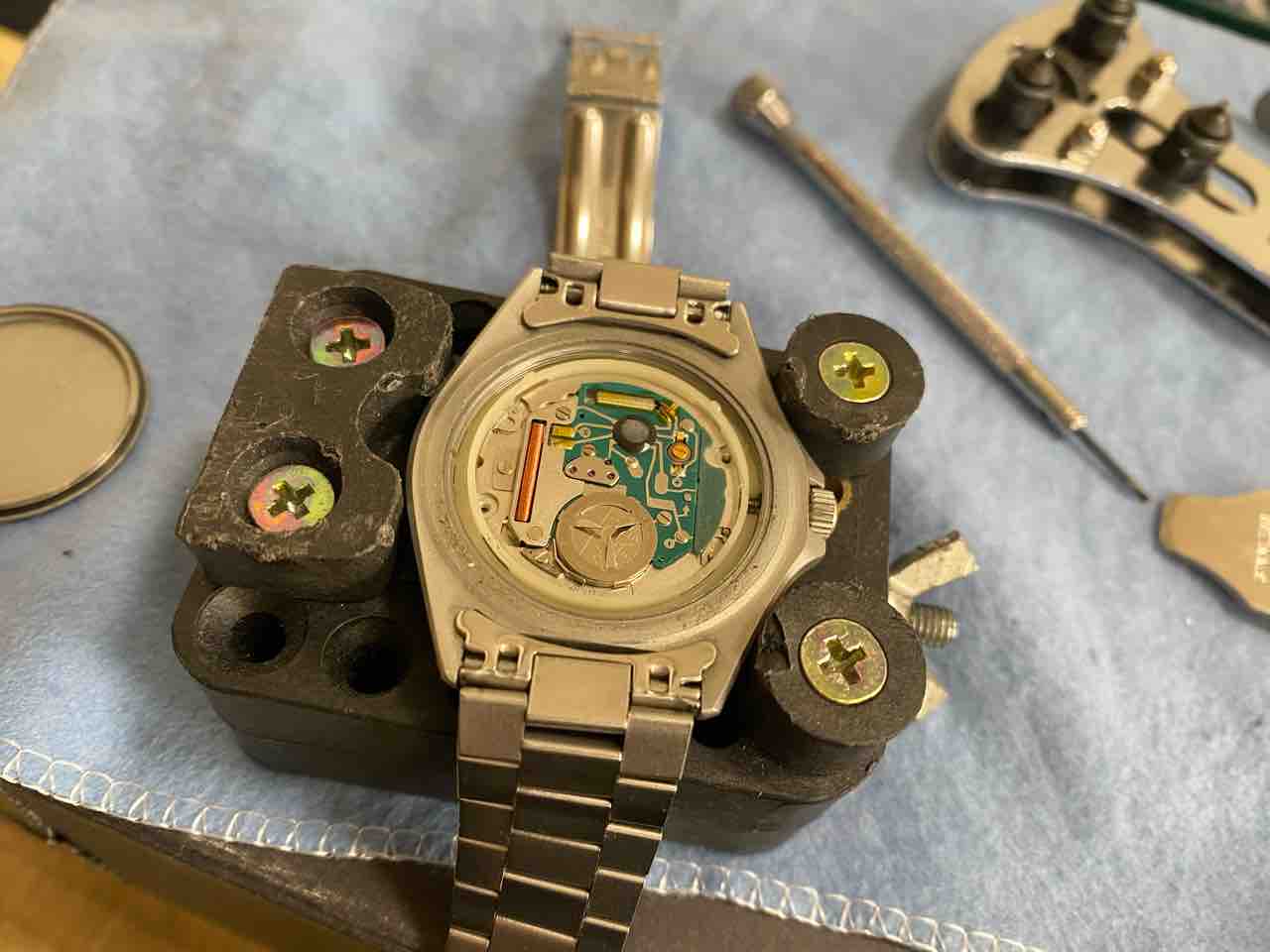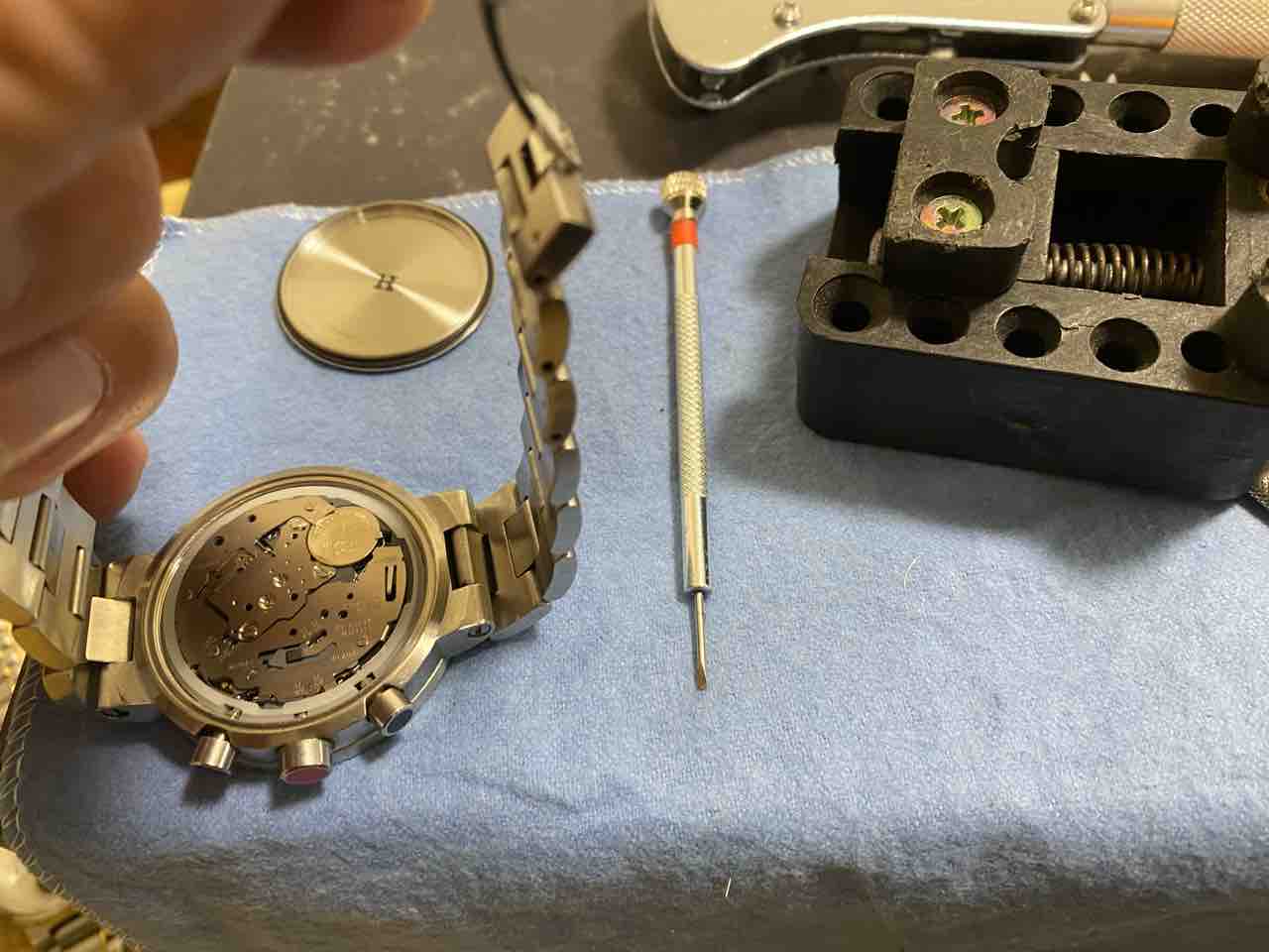 ベルトを外すのが面倒で、横着しました。ベルトがだるだるだからそのまま裏蓋を外せた。自己責任でお願いします。