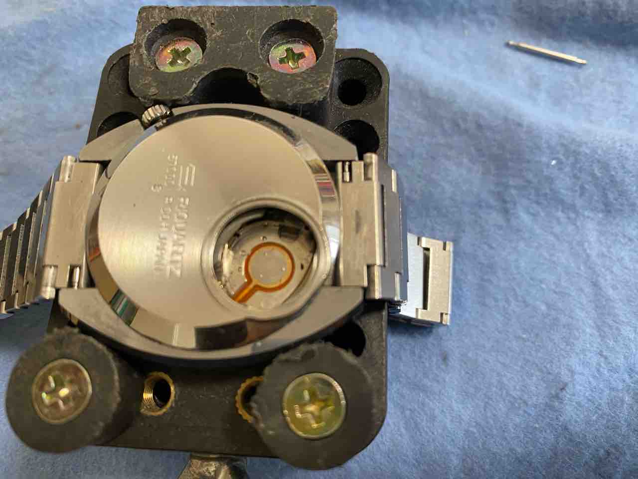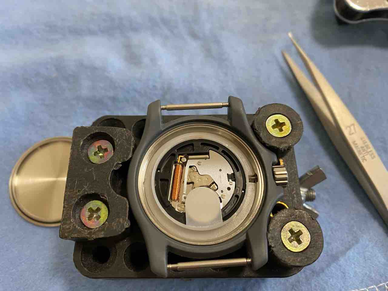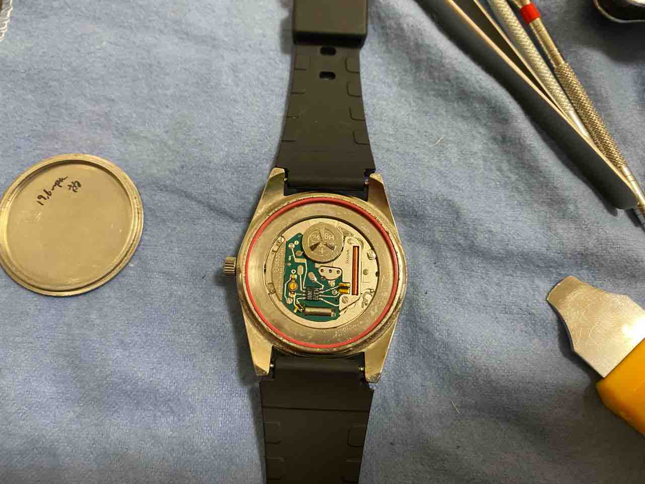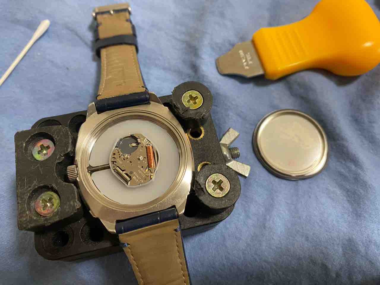 ベルトを外すのが面倒で、横着しました。ベルトがだるだるだからそのまま裏蓋を外せた。自己責任でお願いします。