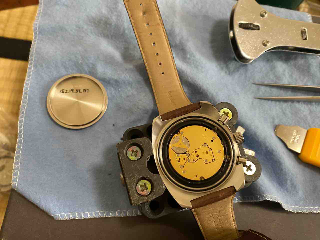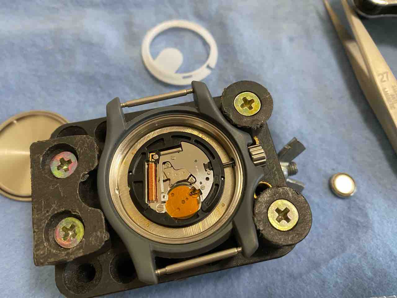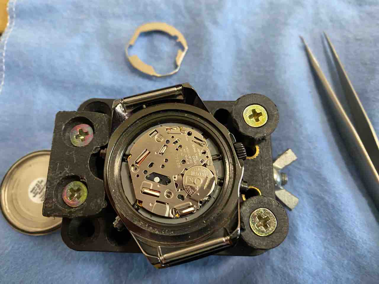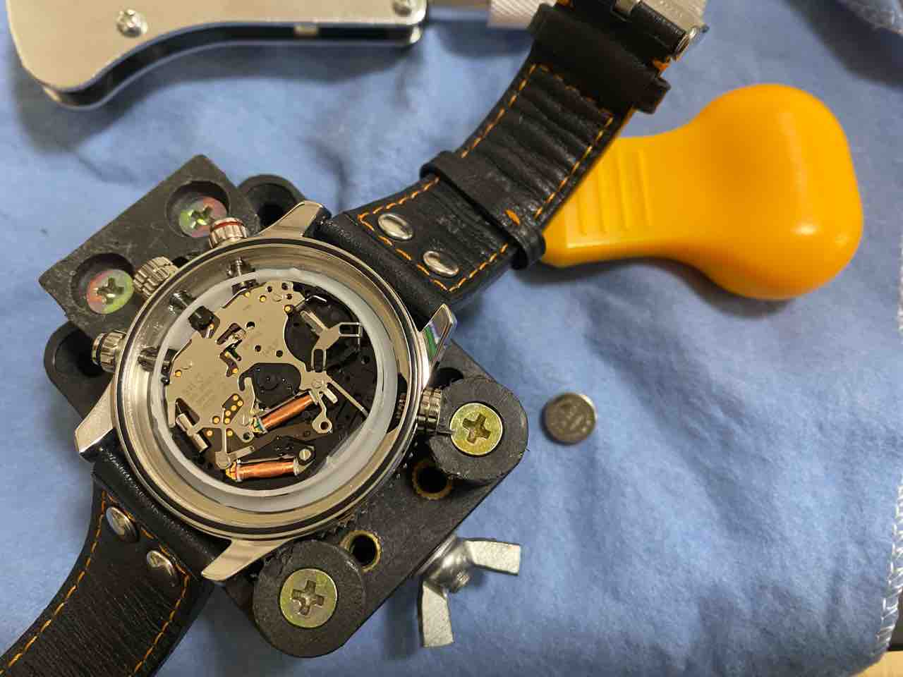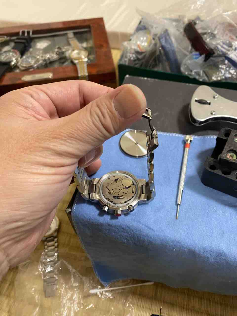 ベルトを外すのが面倒で、横着しました。ベルトがだるだるだからそのまま裏蓋を外せた。自己責任でお願いします。
