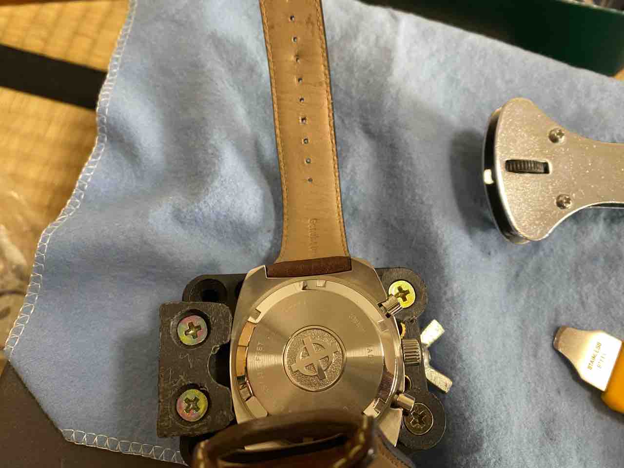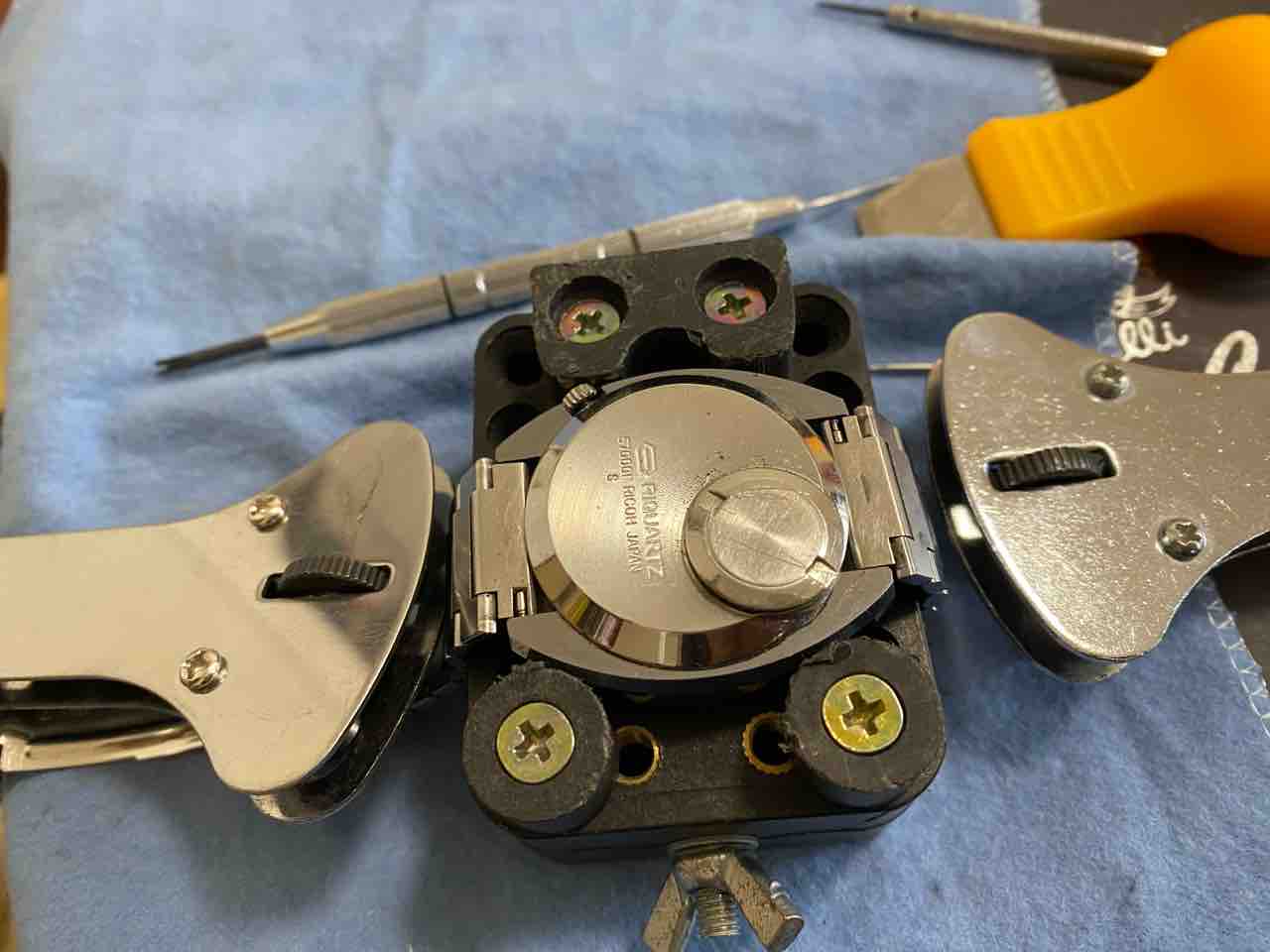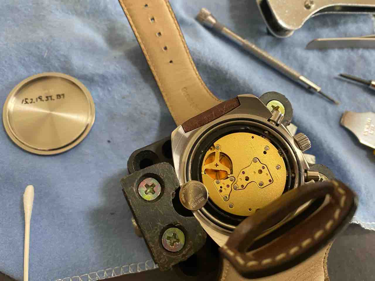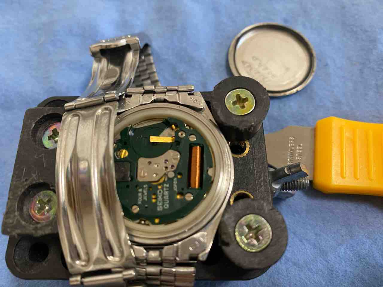ベルトを外すのが面倒で、横着しました。ベルトがだるだるだからそのまま裏蓋を外せた。自己責任でお願いします。