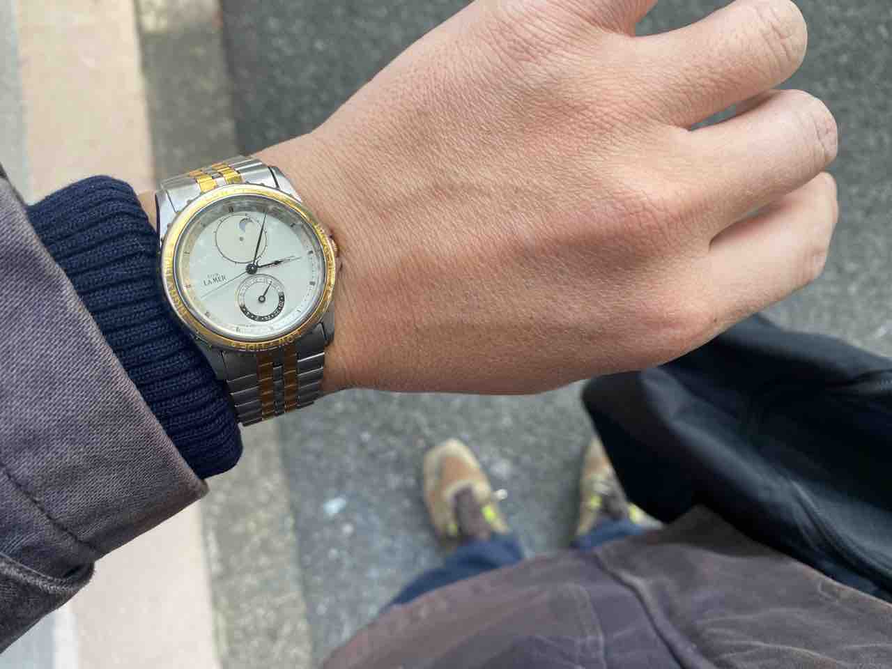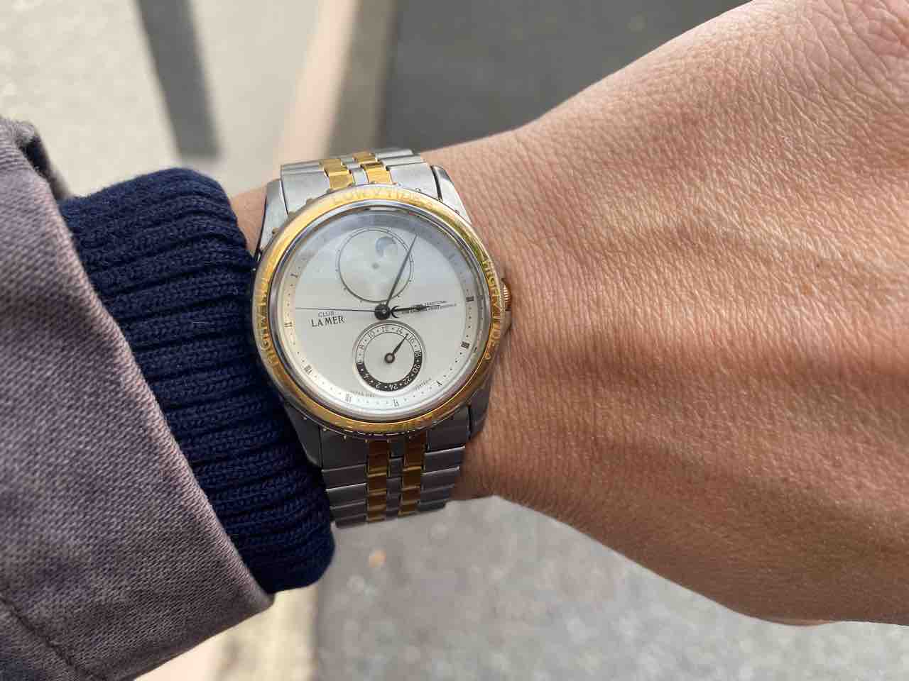 white gold plateだから、金メッキされている高級機。ただ、ブレスの裏側のメッキが浮いてきてポロポロ剥がれ落ちてしまう。ああ…金が…おれの金が…!勿体無いので仕舞っておきます。