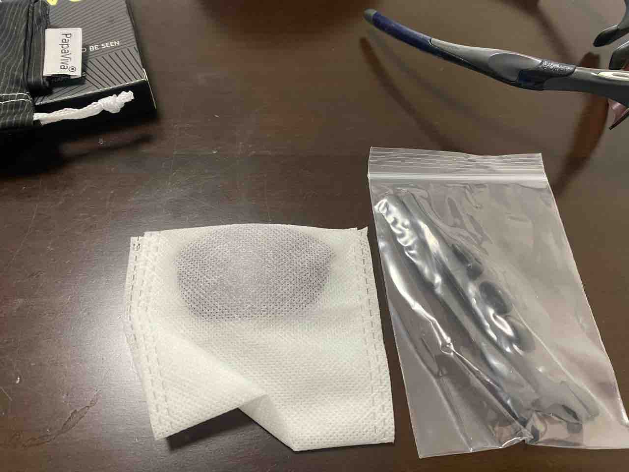 レンズ、耳当て、鼻当てのセット。鼻当ては2セット入っていました。