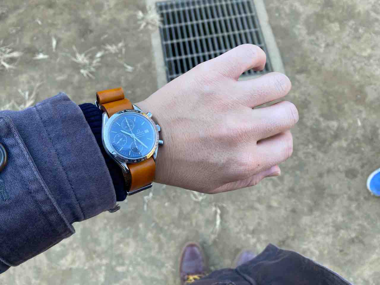 まあ、結論としては、入りませんでした。ムーンスウォッチのラグ幅は20mmだったんですね。スピードマスタープロフェッショナルもラグ幅20mmだったという。サイズの小さいスピマスオートはお呼びではなかった。がーん
