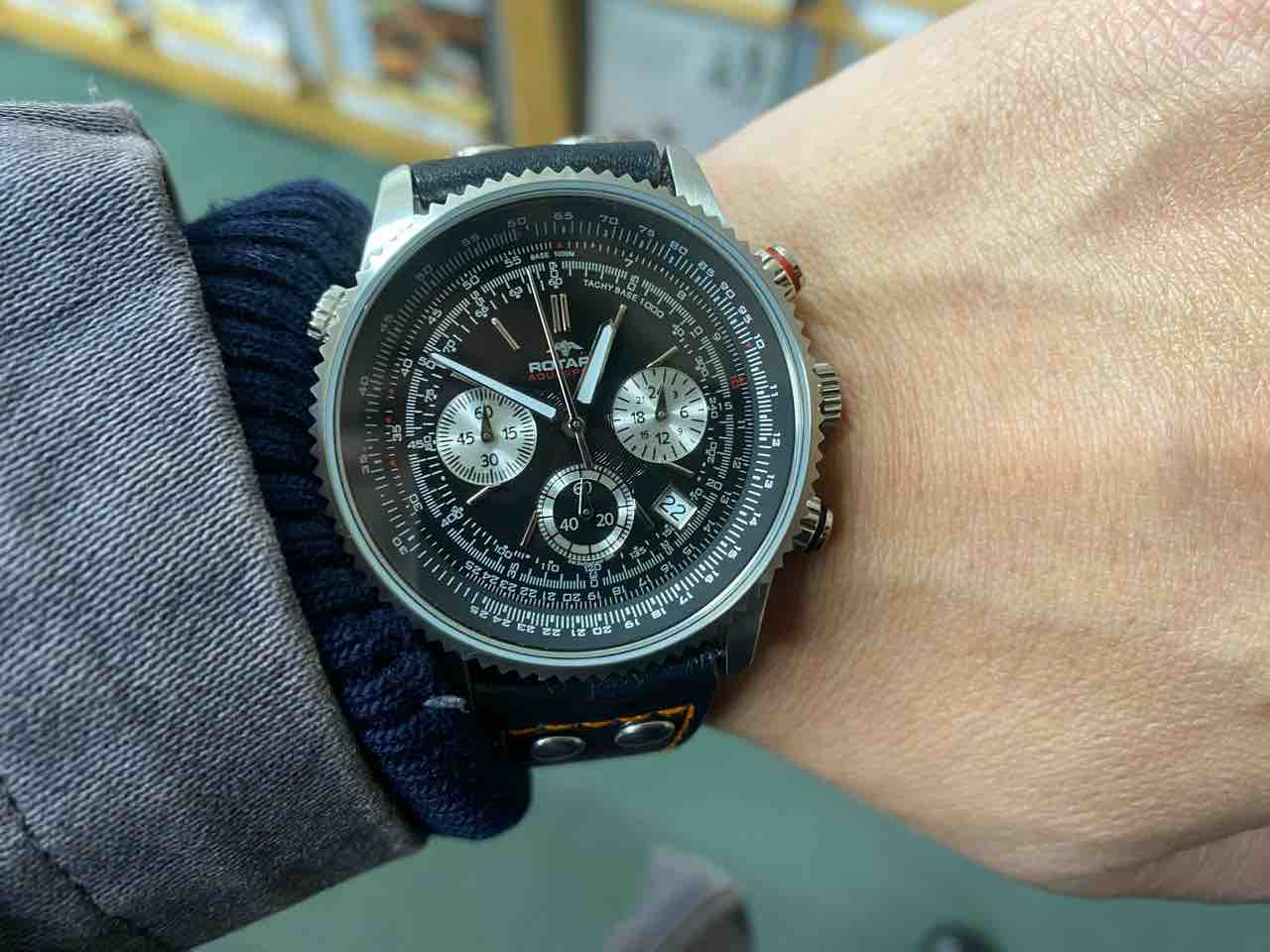 ブライトリングのナビタイマーに似た時計、ロータリーのアクアスピードです。